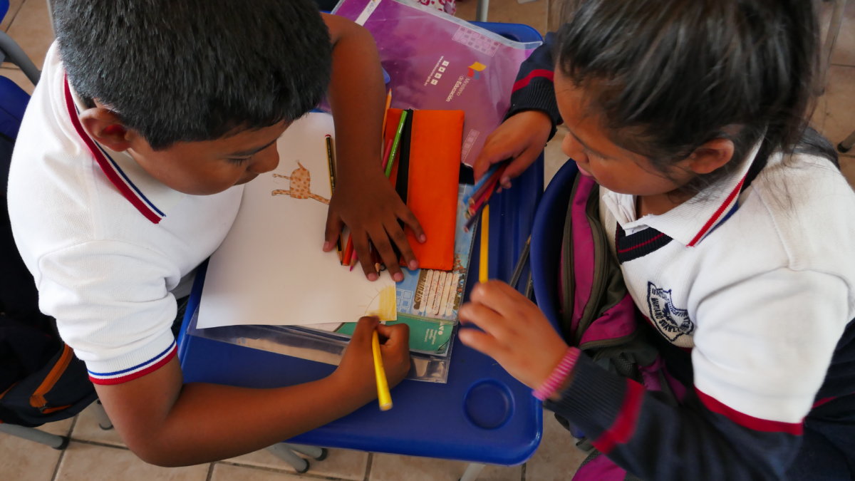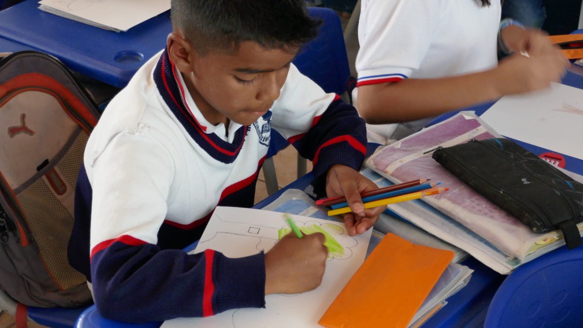 Im Anschluss an die Geschichte stellten wir wie immer den Kindern verschiedene Fragen. So war die erste Frage ob denn die Mutter immer noch traurig sei, wenn der kleine Käfer Kribbel nach seiner Reise zu all den verschiedenen Tieren wieder nach Hause komme. Die Meisten Kinder waren der Meinung, dass die Mutter anschließend nicht mehr traurig sei wenn der Käfer nach Hause komme. Die begründung war, dass er so mutig gewesen sei und die Mutter so stolz, dass sie nun nicht mehr traurig sei. Er würde auch seinen Eltern die Schatztruhe zeigen mit all den verschiedenen Geschenken drinnen. Allerdings würde er nicht erzählen was der Löwe zu ihm gesagt habe. Aber wenn die Mutter mal wieder traurig ist dann würden sie den Rat von dem Löwen schon erzählen, nämlich dass es einen Doktor für die Traurigkeitskrankheit gibt. Der Kleine Käfer Kribbel sei zudem sehr glücklich zu wissen, dass er nicht der Grund für die Traurigkeit der Mutter ist. Auf die Frage hi ob sie denn jemand kennen würden, der immer traurig ist meinte ein Kind sein Opa. Weil die Oma gestorben ist. Der wäre jeden Tag ganz arg traurig und würde erzählen er würde ja auch bald nicht mehr leben. Daran anschließend sind wir mit den Kindern noch einmal die verschiedenen Symptome der Traurigkeit noch einmal durchgegangen und haben damit abgefragt, ob sie sich an den Anfang der Geschichte erinnern können, was denn alles für verschiedene Symptome bei der Käfermutter vorhanden waren… dass sie immer müde war, keine Lust mehr mit dem Kleinen Käfer Kribbel zu spielen, keinen Hunger mehr hatte etc. Auf die Frage hin ob denn ein Kind wüsste, wie man einen Traurigkeitsdoktor nennt meinte ein Mädchen: Psychologe. Die anderen Kinder hatten das Wort auch schon gehört. Das scheint wohl auch durch die sehr gute Kooperation der Fundación Arupo und den Schulen bekannt zu sein. Hier machte Maria auch noch einmal deutlich, dass die Kinder nicht der Grund für die Traurigkeit der Eltern sind und dass man zum Psychologen gehen kann, wenn man sehr traurig ist. Anschließend beim Bilder malen ist es immer das schönste mit den Kindern in Kontakt zu kommen. So entstanden wieder wunderschöne, witzige und farbenfrohe Bilder und die Kinder fragten uns Löcher in den Bauch, forderten unsere Unterstützung ein oder suchten einfach auch nur den Kontakt zu uns. Insgesamt war dieses Projekt in Ecuador wieder eine super schöne Erfahrung und wir danken der Fundación Arupo von ganzen Herzen für die Unterstützung.