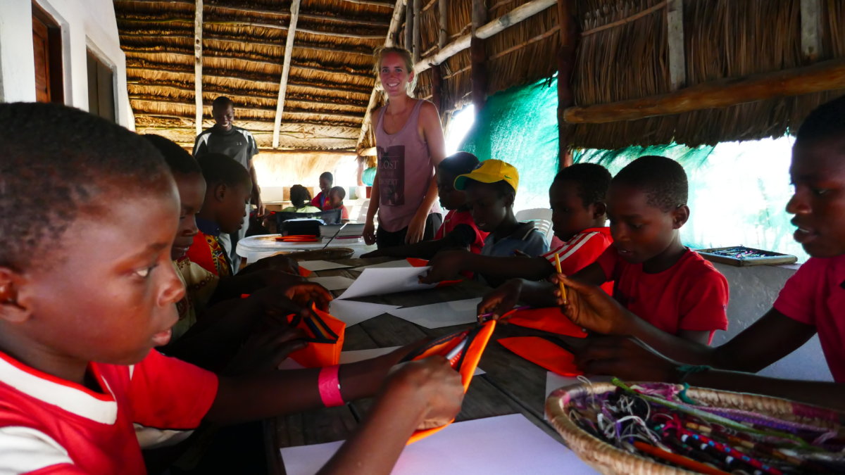Unser colored-footprint Projekt in Mozambique gestaltete sich ein bisschen anders als die Projekte davor. Grund dafür war, dass in Mozambique an den Schulen schon die Sommerferien begonnen hatten. Somit gab es für uns nicht die Möglichkeit das Projekt an einer Schule zu machen. Da wir gute zwei Wochen an einem schönen Strand in dem kleinen Dörfchen namens Tofo verbrachten fiel uns auf, dass sehr viele Kinder am Strand unterwegs waren und den Touristen selbst gemachte Armbänder verkaufen wollten.